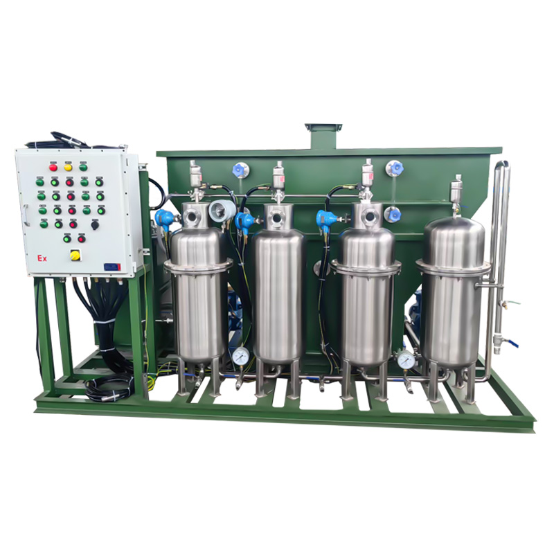 輕油污水處理裝置主要由斜板分離器、高效水-油分離器(含預過濾器、重力分離器、高效聚結分離器、吸附過濾器)、底架、控制箱及相應的配套裝置組成。